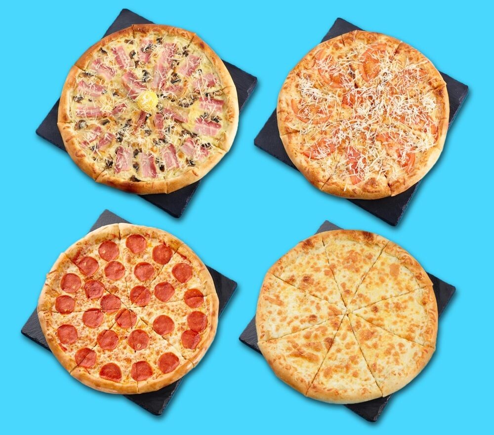 Пицца Маргарита (33 см), пицца Сырная (32 см), пицца Пеперони (32 см), пицца Карбонара (32 см) и Coca-Cola (500 мл) (2 шт.)