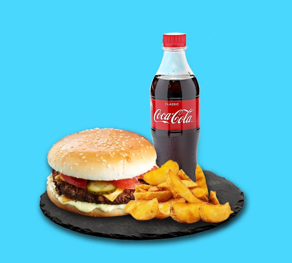 Бургер, Картофель запечённый, Coca-Cola (500 мл)