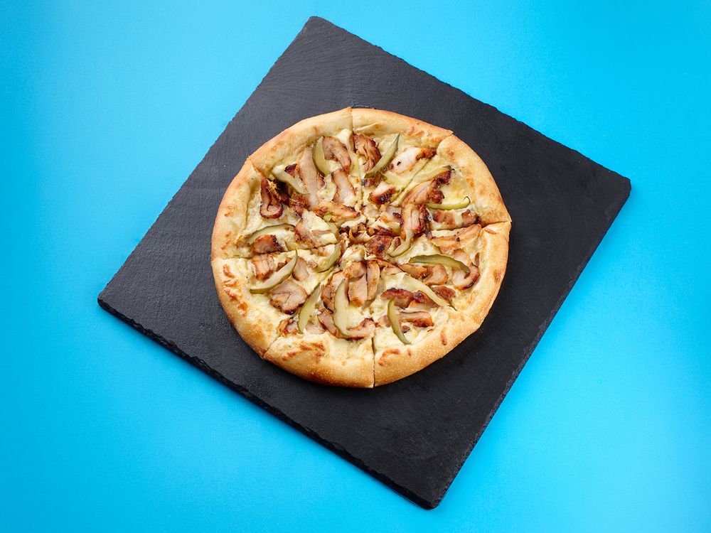 Соус Альфредо, чесночный соус, куриная грудка, куриное филе, маринованный огурчик, сыр Моцарелла