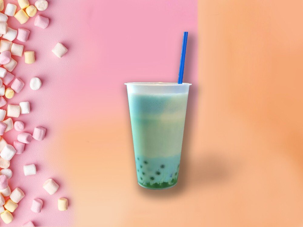 Напиток на основе зеленого китайского чая, фисташкового и бабл гам мороженного, яблочных джус боллов