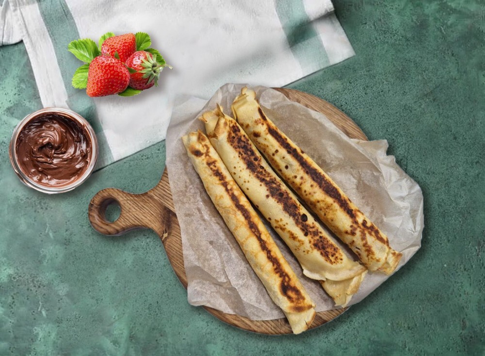 Блины с клубникой и нутеллой