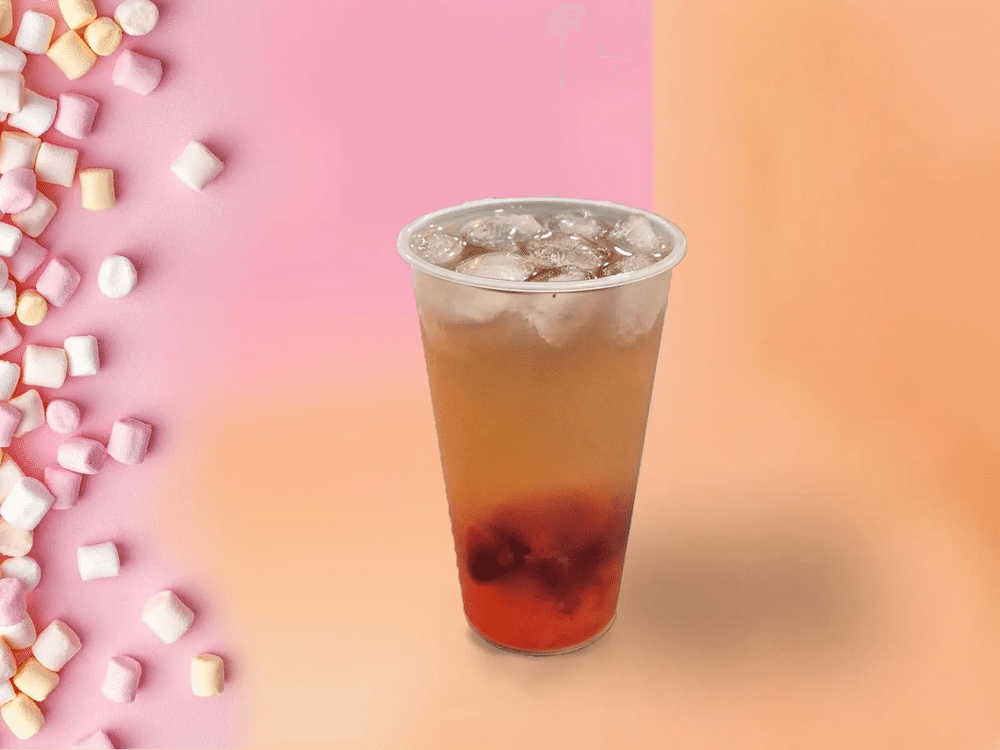Напиток на основе китайского зеленого чая, клубника перетертая в сиропе, клубничный джус болл, лед