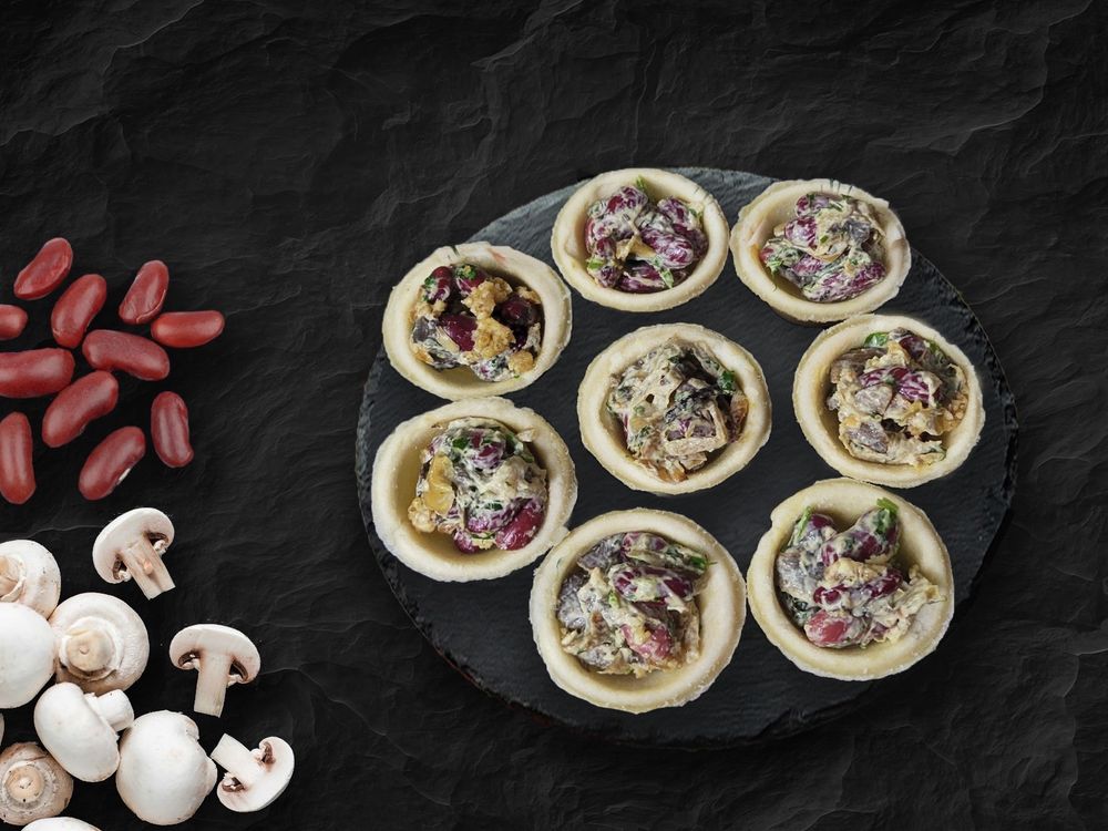 Тарталетки с фасолью, грибами и грецким орехом