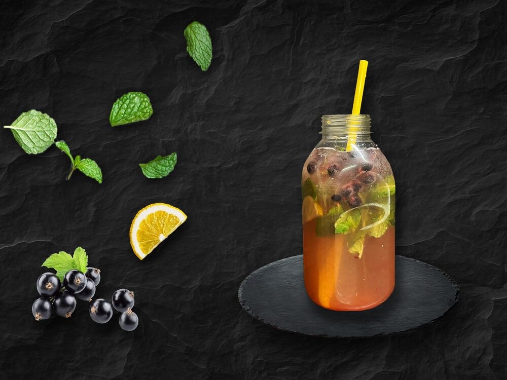 Мята, лайм, сахарный сироп, черная смородина протертая