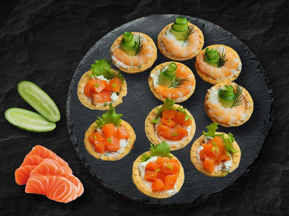 Тарталетки с лососем (4 шт.), тарталетки с креветкой (4 шт.)